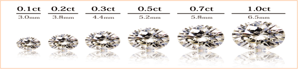 크기가 아니기 때문에 동일한 캐럿에서도 직경이 다르게 보일 수 있습니다.